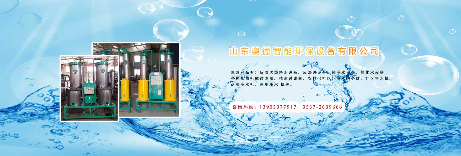 山東澳德智能環保設備有限公司主營產品有:反滲透純凈水設備、反滲透設備、純凈水設備、軟化水設備 ,各種規格機械過濾器、精密過濾器、農村(社區)凈水服務站,社區售水機、商務凈水機,家用凈水 機等。